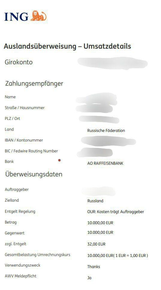 💶 Überweisungen nach Russland